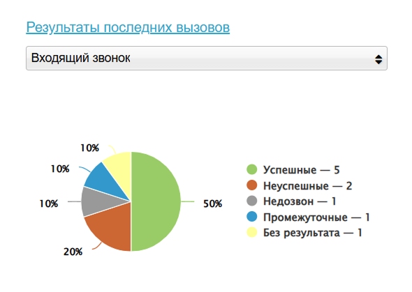 Например, в Скорозвоне доступно несколько отчётов. Благодаря диаграммам вы можете отслеживать результативность отдельного проекта: