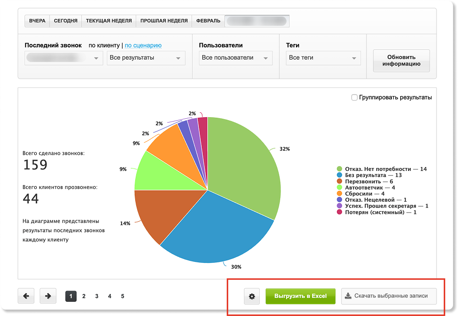 Кроме того, из отчёта можно выгрузить записи разговоров, чтобы выявить причины отказов и найти ценные инсайты.