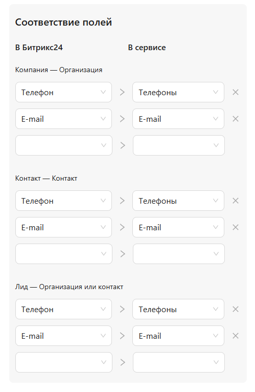 - Выберите, что передавать в сервис: лиды или компанию и контакт.