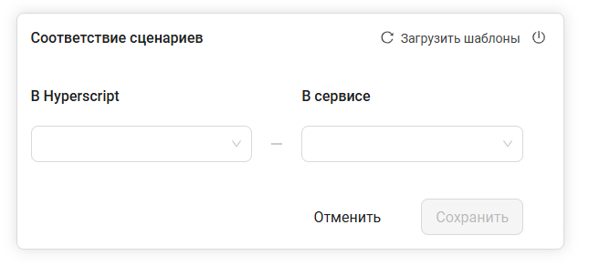 После успешной авторизации можно настроить соответствие сценариев в HyperScript и сценариев в Скорозвоне. Выберите соответствие и сохраните настройки.