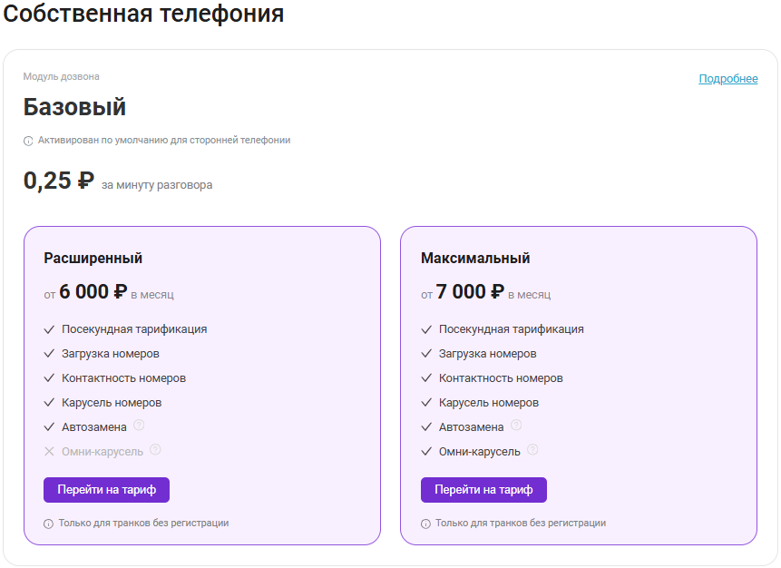 Тарификация поминутно: 0,25 ₽/мин. - Расширенный: