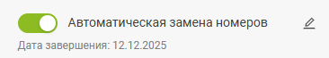 На форме создания или редактирования карусели предусмотрен переключатель «Автоматическая замена номеров». После его активации открывается дополнительный блок с настройками автозамены.