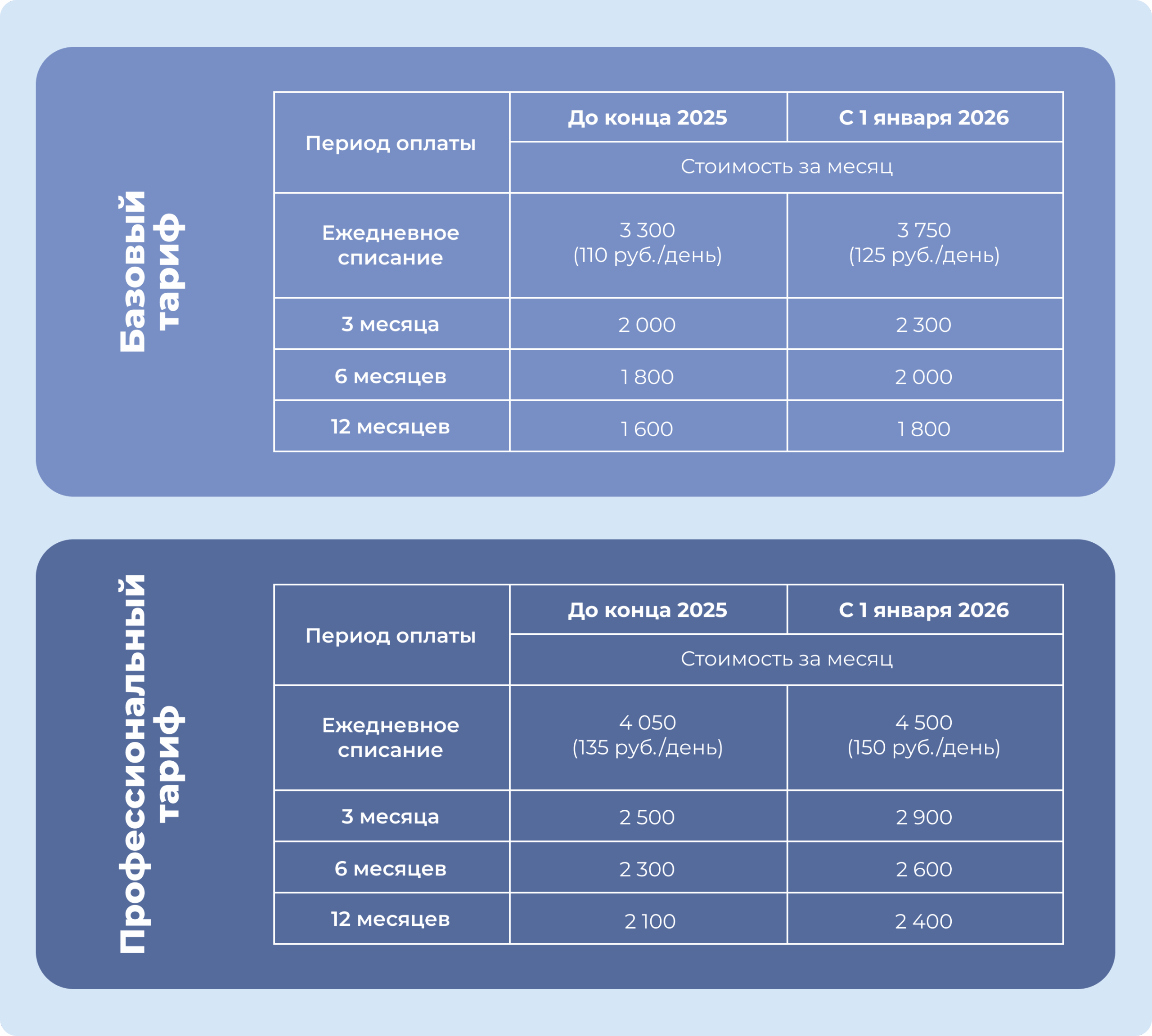 2️⃣ Клиенты с ежедневным списанием могут подключить пакет по тарифам 2025 года. Это выгодно для компаний, которые используют сервис не менее 10 дней в месяц.