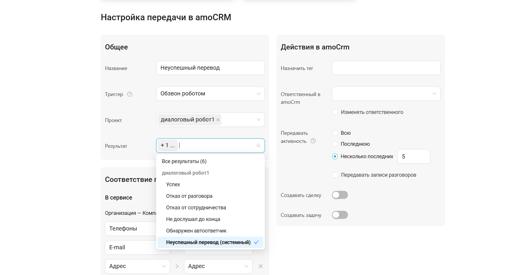 Теперь, если диалоговый робот не смог перевести клиента на оператора, у звонка будет проставлен статус «Неуспешный перевод (системный)». Такие вызовы для контроля или повторной обработки можно передать по API и через готовую интеграцию с Битрикс24 и amoCRM.