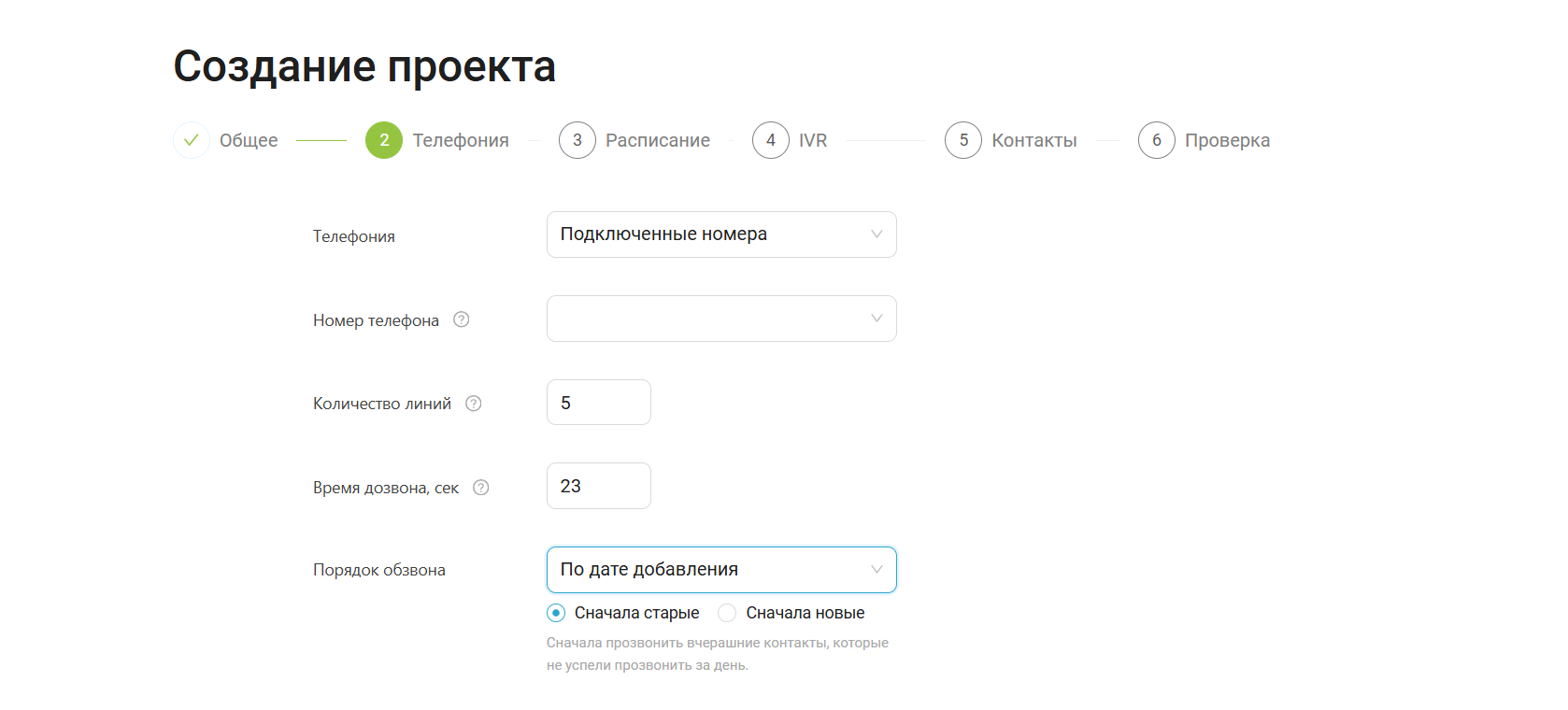Настройка «Порядок обзвона» теперь доступна и в проектах робота. Вы можете задать порядок обработки базы в зависимости от задач бизнеса: например, звонить сначала новым контактам или тем, кому ещё ни разу не звонили. Гибкие настройки приоритета позволят обработать базу с максимальной эффективностью.